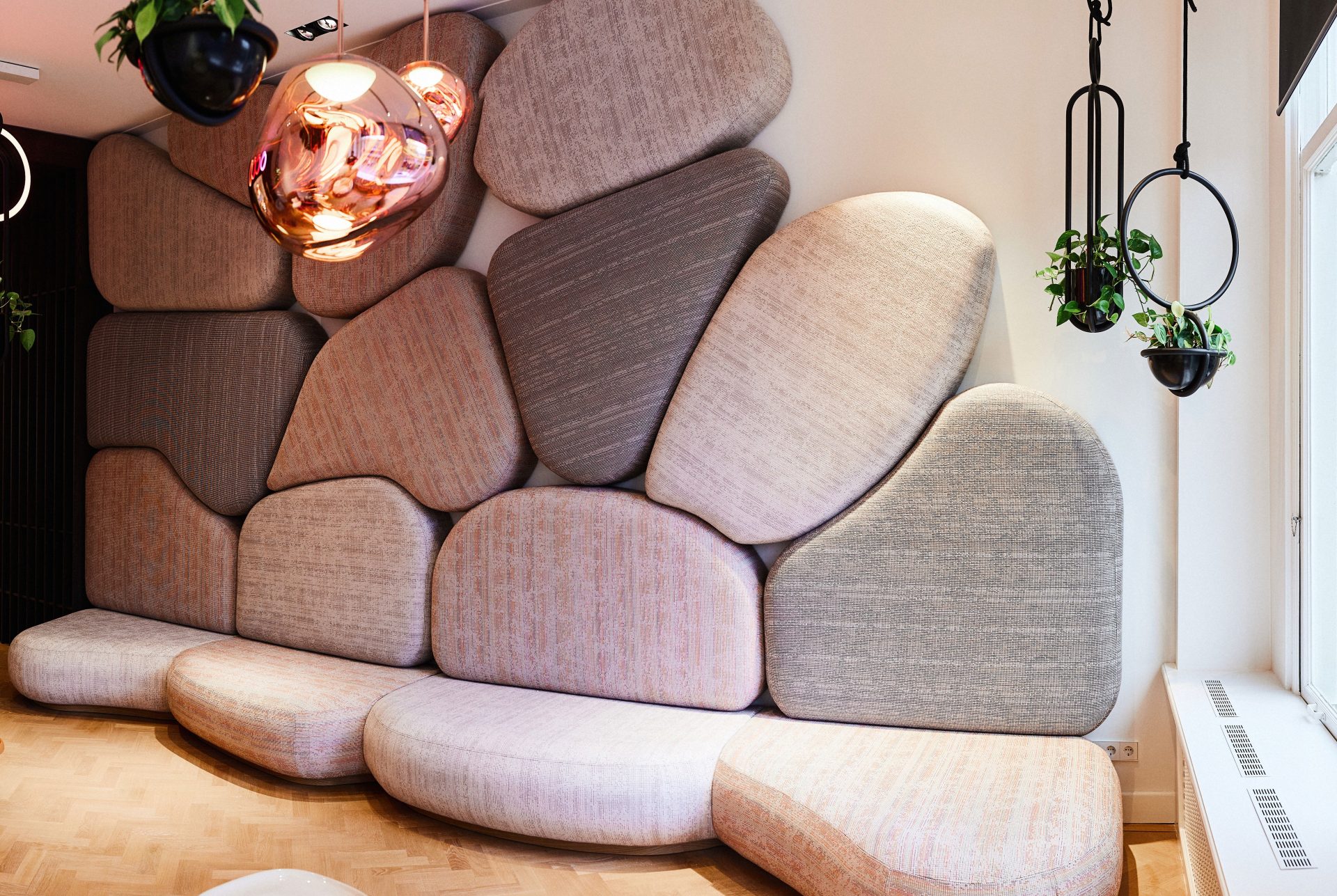 Rootsi klient, kes meid ise paar aastat tagasi soovituste peale üles otsis, teab, et päris nahk ühiskondlikus ruumis on väärtus. Eestis eelistatakse tihti odavamaid materjale, aga seal hinnatakse käsitööd ja vastupidavust. Meie peame tundma materjale,  usaldama tarnijaid, tabame õiget ajastust. Meil peab olema oskus rääkida ruumiga sama keelt – olgu see siis kõver sein, pähklikoor-diivan või Iisrealist hangitav spetsiaalselt konkreetse projekti jaoks kootud kangas. Kui klient usaldab meid, et me teeme ära, siis me teeme selle ära.